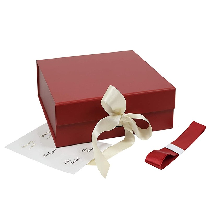 Caixa de presente magnética do fechamento da dobradura vermelha do cartão com a fita para caixas de presente diferentes do tamanho