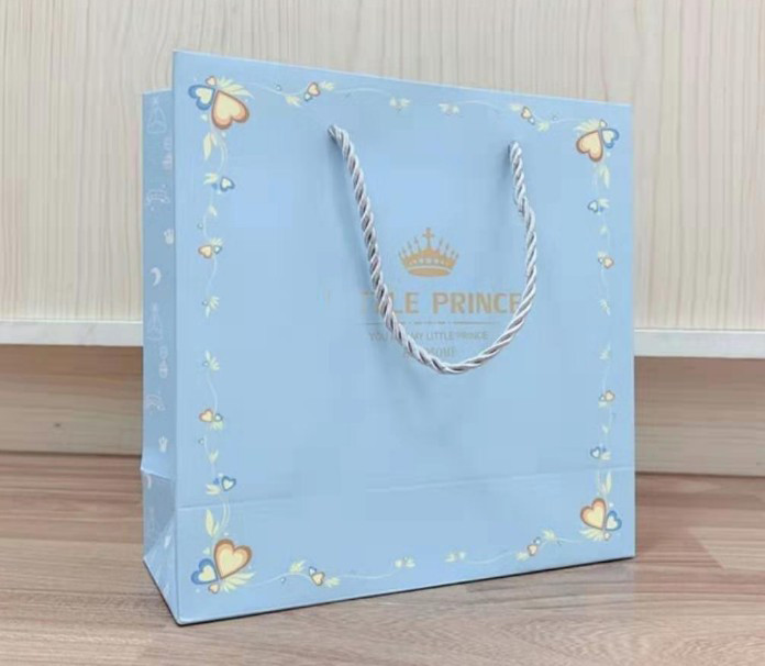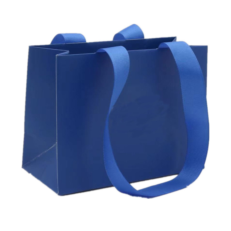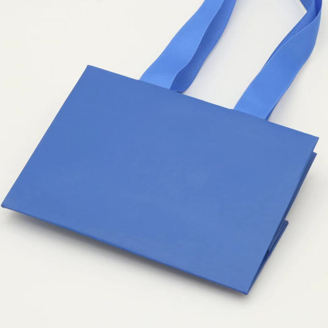 Saco de papel de compra azul do presente em sacos de empacotamento