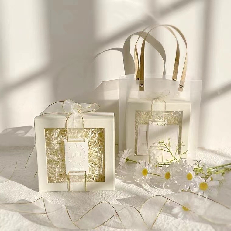 Art Paper Kraft Gift Box branco com o punho de papel transparente da fita da janela para o empacotamento do presente